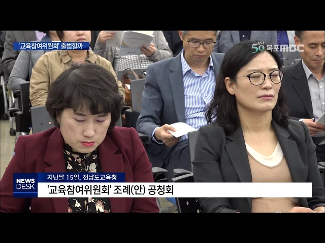 ◀ANC▶ 장석웅 전라남도 교육감이 의욕적으로 도입을 추진하고 있는 '교육 참여위원회'가 올해 출범을 하지 못하게 됐습니다. 지역마다 각각 다른 교육현안을 지역주민들이 직접 결정한다는 취지로 도입을 추진했지만 도의회가 절차문제 등을 들어 제동을 걸었습니다. 김진선 기자입니다. ◀END▶ ◀VCR▶ 지난 달 전남...