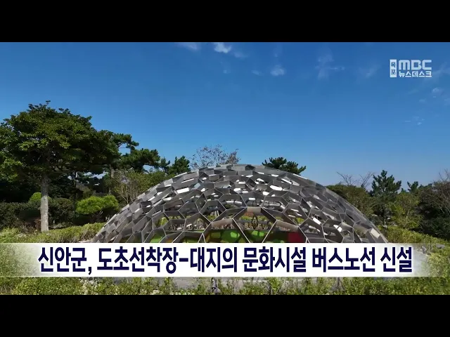 신안군은 내일(25일) 도초도 대지의 문화시설(숨결의 지구) 개관을 앞두고, 관광객 교통편의를 위해버스노선을 신설 운행합니다.지난 22일 신규 개설된 도초도 공영버스 노선은 비금 가산선착장에서 도초 수국정원, 도초면까지 가는 간선버스와 도초 화도선착장에서 수국정원까지 가는 지선 버스로 구성돼 있습니다.