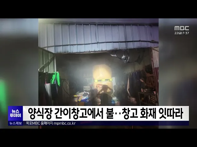 어젯밤(21) 11시쯤완도군 신지면의 한 광어양식장 간이창고에서 불이 나 안에 있던 사료첨가제 약품과 창고 외벽 등을 태우고 40여 분 만에 꺼졌습니다.앞선 오후 5시 50분쯤에는왼도군 소안면의 한 단독주택 마당에 있던간이창고에서 불이 나 안에 있던 목재류와 창고 절반이 타는 등밤사이 곳곳에서 창고 화재가 잇따랐습...