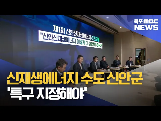 ◀ 앵 커 ▶민간 해상풍력 사업이 본격화 되고 있는 신안군을 '에너지 특구'로 지정해야 한다는 주장이 제기됐습니다.전국 최초로 민간주도 에너지 재단을 설립한 신안군에서 주민포럼이 열렸습니다.박종호 기자가 보도합니다.◀ 리포트 ▶민간주도의 전남해상풍력 1단계 사업지에서 첫 전력 생산이 시작됐습니다.자은도 북서쪽...