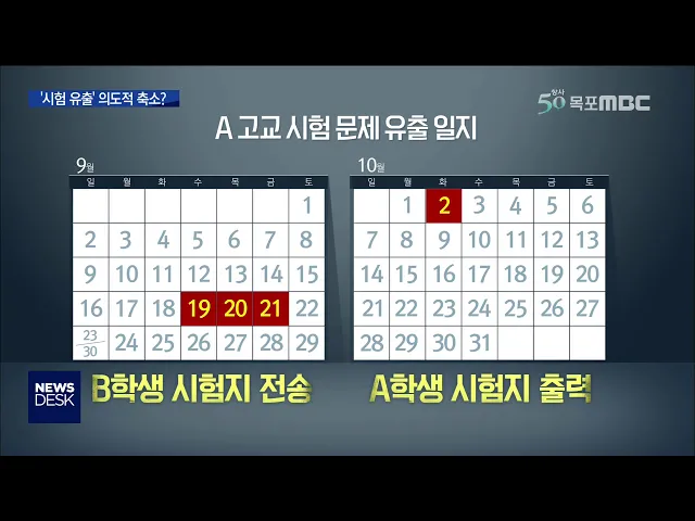 ◀ANC▶ 목포의 한 고등학교 시험문제 유출 사건과 관련해 교육당국이 진상조사가 계속되고 있습니다. 사건발생 초기 학교 측이 사건을 축소하려 했다는 의혹이 제기됐습니다. 김진선 기자가 취재했습니다. ◀END▶ 목포의 한 고등학교에서 발생한 시험문제 유출은 모두 두 차례. 중간고사 사흘 전인 지난 2일과 추석 전...