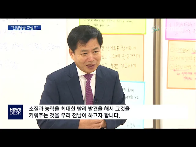 ◀ANC▶ 장석웅 전남도교육감이 취임 100일을 맞아 일선학교의 공개수업을 통해 선생님을 교실로 보내겠다고 선언했습니다. 대규모 조직개편을 선언한 것이어서 전남교육계가 술렁이는 가운데, '수능 최하위인 전남' 이라는 오명을 벗기 위한 조치라는 점을 강조했습니다. 김진선 기자가 현장 취재했습니다. ◀END▶ ◀V...
