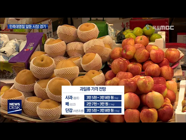 ◀ANC▶ 극심햇던 폭염과 폭우가 일주일 앞으로 다가온 추석 장바구니 물가에도 영향을 미치고 있습니다. 과일을 비롯한 제수용품 가격이 오르면서 차례 준비에 나선 서민들의 부담이 커지고 있습니다. 윤수진 기자가 취재했습니다. ◀END▶ ◀VCR▶ 추석을 앞두고 벌써부터 전통시장은 손님들로 북적입니다. 이리저리 ...