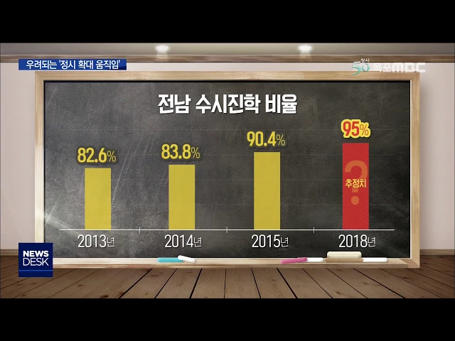 ◀ANC▶ 전남지역 고3 수험생들은 정시나 수시 가운데 어떤 전형으로 대학에 더 많이 가고 있을까요.. 전라남도 교육청의 비공식적 조사결과 수험생들의 95%가 수시를 통해 진학을 하는 것으로 알려지고 있습니다. 정시확대쪽으로 기우는 대학입시개편안에 지역교육계가 큰 우려를 표시하고 있습니다. 양현승 기자가 보도...