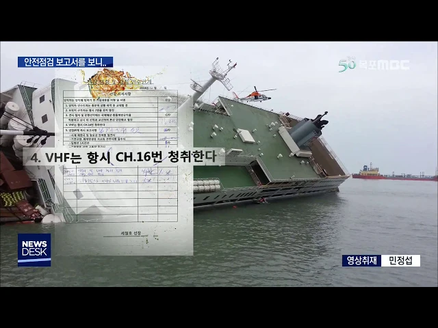 ◀ANC▶ 세월호는 사고 당시 화물을 제대로 묶지도 않았고 수밀문이 열린 상태로 운항을 했습니다. 안전점검 일지 등 관련 서류를 보면 수개월 동안 문제가 없는 상태로 운항했다고 기록돼 있습니다. 안전점검이 형식적으로 이뤄졌다는 반증이라는 분석입니다. 김양훈 기자가 보도합니다. ◀END▶ 세월호 뱃머리에 실려있...