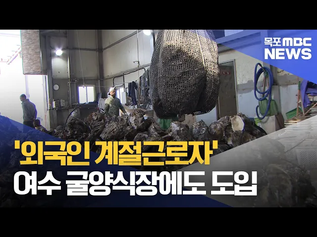◀ 앵 커 ▶여수시가 최근, 어촌 인력난 해소를 위해관내 굴 양식어가에 외국인 계절 근로자를 처음으로 도입했습니다.이들 외국인 계절 근로자들은 본격적인 굴 수확기를 맞아내년 3월까지 일하고 돌아가게 됩니다.최우식 기자가 보도합니다.◀ 리포트 ▶햇 굴 수확인 한창인여수시 돌산읍의 굴 양식장.수확한 굴을 손질하는 ...
