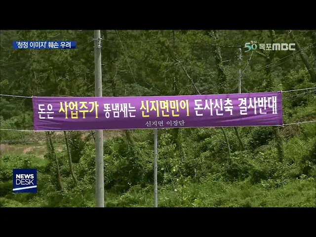 ◀ANC▶ 명사십리 해변으로 유명한 완도군 신지도에 대규모 축산시설 사업이 추진되고 있습니다. 주민들은 악취와 오염 등으로 관광산업과 청정 먹거리 산업에 큰 타격이 우려된다며 '결사반대'를 외치고 있습니다. 양현승 기자가 현장 취재했습니다. ◀END▶ ◀VCR▶ 완도군의 한 섬마을. 조용했던 분위기가 요즘 뒤숭...