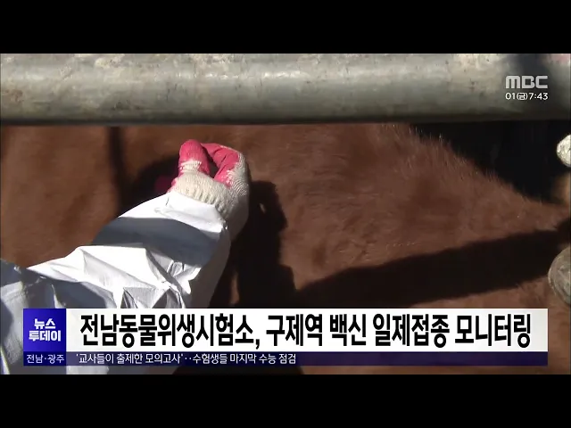 전라남도동물위생시험소가다음달(11)부터 한달동안 소와 염소 농가를 대상으로 하반기 구제역 백신 일제접종 모니터링 검사를 실시합니다.검사 대상은 올해 구제역 백신 항체검사를하지않았거나 백신 항체 양셩률이 저조한458개 농가이며,항체 양성률이 기준치 미만으로 나타날 경우과태료 등 행정처분을 받게 됩니다.
