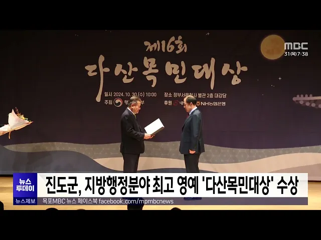 진도군, 지방행정분야 최고 영예 '다산목민대상' 수상