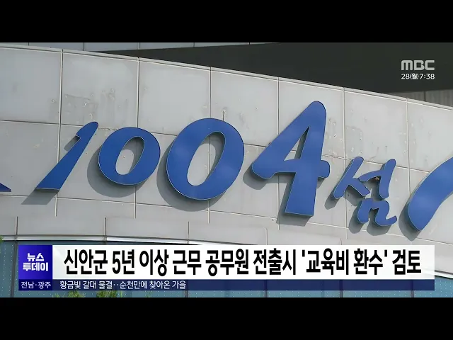 신안군은 5년 이상 근무한 공무원 가운데 전출을 희망하는 경우 교육비 환수를 위한 검토작업에 들어갔습니다.신안군은 지난 2018년부터 올 상반기까지 다른 자치단체로 전출한 신안군 공무원수가 64명에 달하고, 이들의 이직사유가 '섬 근무의 어려움'이라는 점을 감안해 관련 조치를 검토하게 됐다고 밝혔습니다.신안군은...