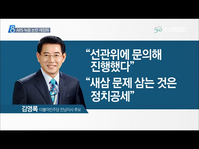 ◀ANC▶ 전남지사 선거에 나선 야당후보들이 더불어민주당 당내경선에서 불거졌던 김영록 후보의 ARS '육성녹음' 지지호소를 또 다시 문제삼고 나섰습니다. 야당후보들은 명백한 선거법 위반이라며 김후보의 사퇴와 빠른 검찰수사를 촉구했고 김영록 후보는 정치공세라며 맞서고 있습니다. 박영훈 기자가 보도합니다. ◀E...