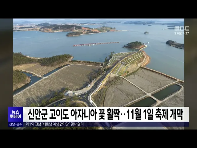 신안군은 오는 11월 1일부터 10일간 ‘가을 꽃 여행의 완성’이라는 주제로 신안군 압해읍 고이도 일원에서 5천만 송이 ‘섬 아자니아꽃 축제’를 개최한다고 밝혔습니다.이번 축제는 갯국으로도 불리는 아자니아꽃 감상과 함께 기념 공연, 버스킹 등 다양한 행사가 진행될 예정입니다.
