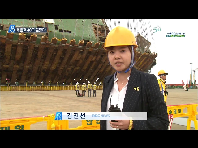◀ANC▶ 세월호를 바로 세우기 위한 준비작업이 모두 마무리됐습니다. 목포신항으로 옮겨진 지 1년 만입니다. 직립을 하루 앞두고 시험삼아 세월호를 들어본 결과 선체가 절반가량 무리없이 들리면서 침몰 이후 4년 만에 바닥에 닿아있던 좌현에 햇볕이 스며들었습니다. 김진선 기자입니다. ◀END▶ ◀VCR▶ 1년이 넘도...