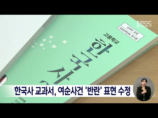 여순사건을 '반란' 등으로 기술한고등학교 한국사 검정 교과서에서 해당 표현이 수정됐습니다.교육부가 더불어민주당 김문수 의원실에 제공한 자료를 보면,여순사건을 반란, 반군 등으로 표현한교과서 다섯 종에 해당 문구가 바뀐 것으로 확인됐습니다.이번 조치는 출판사의 수정 요청을교육부가 승인하면서 이뤄졌으며,바...