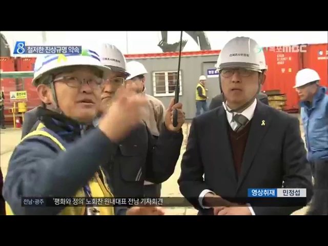 ◀ANC▶ 사회적참사 특별조사위원회가 출범한 뒤 처음으로 세월호가 있는 목포신항을 찾았습니다. 8월 이후 활동을 시작하는 특조위는 침몰 원인을 밝혀내는 등 철저한 진상규명을 다시 한 번 약속했습니다. 김양훈 기자가 취재했습니다. ◀END▶ L자 형태의 철제 수직빔이 세월호 선체 외부에 설치됐습니다. 약해진 세월...