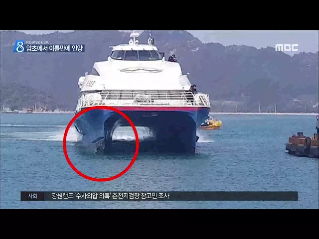 ◀ANC▶ 지난 25일, 흑산도 앞바다에서 좌초된 여객선 핑크돌핀호가 오늘(27) 인양됐습니다. 안개 때문에 선박 안전검사 감독관들이 흑산도로 들어가지 못해 아직 흑산항에 정박해 있습니다. 신광하 기자가 보도합니다. ◀END▶ 지난 25일, 암초에 걸렸던 여객선 핑크돌핀호가 크레인에 의해 들어 올려집니다. 바다에 뜬 ...