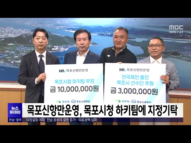 목포신항만운영은 오늘(7일) 목포시청 하키팀과 전국체전 출전 목포시 선수단 지원을 위한 후원금 천3백만원을 목포시 체육회에 지정 기탁했습니다.목포신항만운영의 목포시청 하키팀 선수단 후원은 지난 2021년부터 4년째 계속되는 것으로, 목포시는 체육회를 통해 선수단 훈련 용품 구입 등에 사용할 예정입니다.