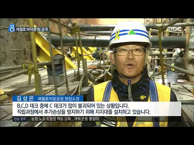 ◀ANC▶ 1년 전 오늘(23), 바다에 침몰해있던 세월호가 물 위로 드러나는 모습이 생생하게 전파를 탔습니다. 목포신항으로 옮겨진 세월호는 지금, 선체 바로 세우기 준비 작업이 한창인데요. MBC 취재진이 처음으로 세월호 선체 안으로 직접 들어가 현재 세월호 상태를 둘러봤습니다. 김양훈 기잡니다. ◀END▶ 세월호 2...