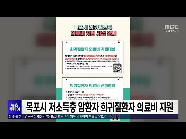 목포시는 저소득층 환자들의 경제적 부담을 경감하고 치료중단을 방지하기 위해 암환자·희귀질환자를 대상으로 연중 의료비 지원을 신청받는다고 밝혔습니다.목포시 암환자의료비의 지원 대상은 성인과 소아 암환자로 나눠 지원되고,지난 한 해 동안 암환자 223건 희귀질환자 8,361건에 모두 8억여원을 지원했습니다.