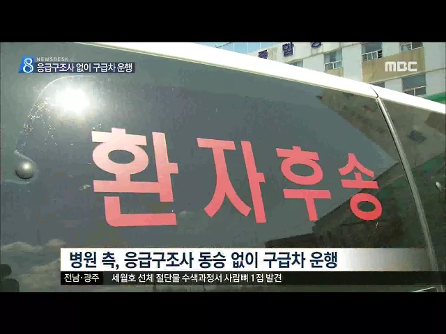 ◀ANC▶ 병원으로 가던 구급차에서 환자가 뛰어내려 숨지는 사건이 발생했습니다. 이 환자는 정신불안 증세를 보였다고 하지만 구급차는 반드시 동승해야할 의료인력 없이 운전기사 혼자 운행한 것으로 드러났습니다. 구급차량의 안전불감, 김양훈 기자가 고발합니다. ◀END▶ 달리던 구급차 뒷좌석에서 한 남성이 갑자기...