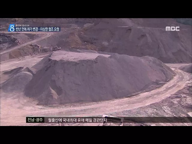 ◀ANC▶ 이번에 적발된 토석 채취장 가운데 한 곳의 허가 과정에서 석연찮은 점이 확인됩니다. 공공 목적에만 골재를 납품할 수 있도록 허가를 받았는데, 일반 공사현장에도 토석을 팔 수 있도록 허가가 변경됐습니다. 이례적인 허가에 이어 변경 허가를 받기까지 목포지방해양수산청은 지자체에 두차례 공문을 보내 협조...