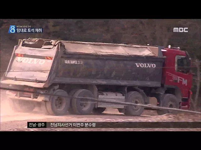 ◀ANC▶ ◀ANC▶ 시청자 여러분 안녕하십니까.. 오늘부터 목포*전남권 뉴스데스크를 진행하게된 김 윤 기자입니다. 친절하고 깊이있는 뉴스로 시청자 여러분과 함께 호흡하겠습니다. 오늘 목포MBC 뉴스데스크 첫소식은 산허리를 움푹 파고들어 볼썽사나웠던 토석채취 현장을 고발합니다. 건설 현장에 원자재로 쓰이는 흙...