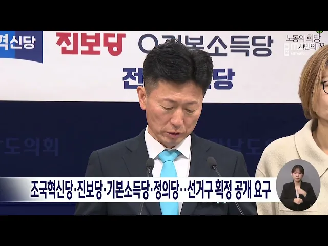 조국혁신당과 진보당, 기본소득당, 정의당전남도당은 오늘(15) 전라남도 선거구 획정을공개할 것을 요구했습니다.이들은 전남도의회 브리핑 룸에서 기자회견을 갖고 "전남도의 자치단체 선거구획정 과정이 불투명하고 도민참여가 배제된 채 진행되고 있다"며 이같이 요구했습니다.야 4당은 특히,선거구 획정 위원회 구성과...