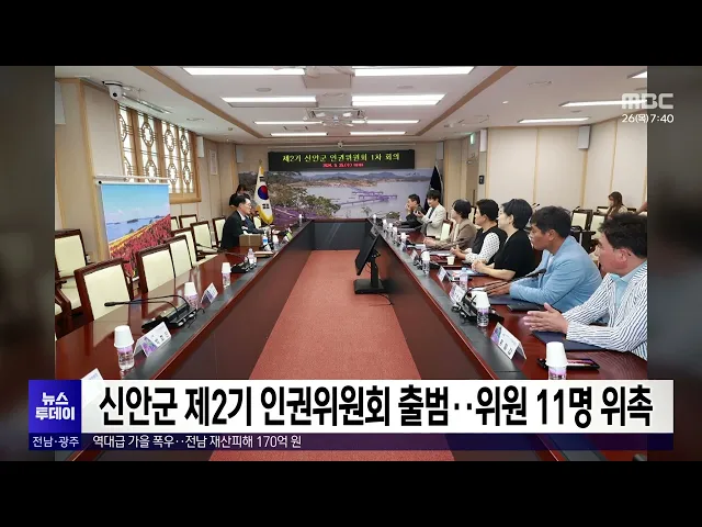 신안군 인권 보장과 증진을 위한 제2기 신안군 인권위원회가 오늘(25일) 위원 위촉식을 갖고 업무를 시작했습니다.제2기 신안군 인권위원회는 위원 8명과 군의원 2명, 당연직 위원 1명 등 11명으로 구성됐고, 위원장 후보로는 김수아 전 법무부 인권정책과장이 추천됐습니다.