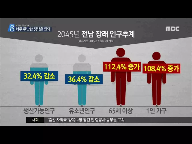 ◀ANC▶ 심각한 인구위기를 맞고 있는 전라남도가 인구문제를 극복하기 위해 최근 종합대책회의를 갖고 정책개발에 나서고 있습니다. 하지만, 심각한 위기상황에 비해 제시된 정책들이 너무 무난하다는 평가를 받고 있습니다. 김 윤 기자가 보도합니다. ◀END▶ ◀VCR▶ 전남의 각종 인구지표에 빨간불이 켜진 지는 오래...