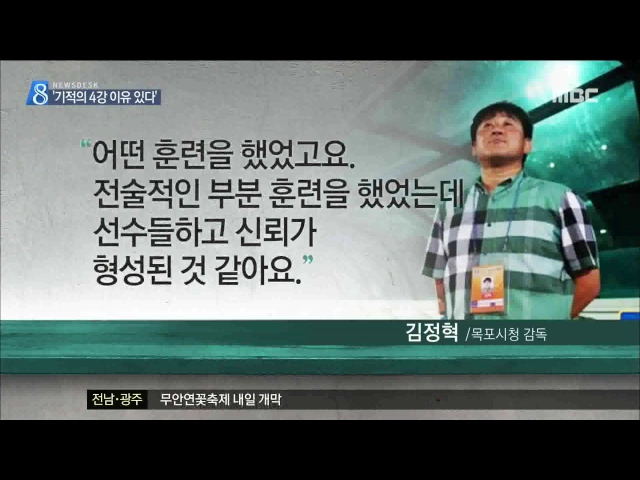 ◀ANC▶ 3부리그 격인 실업축구 내셔널리그의 목포시청이 프로팀까지 참가한 FA컵에서 4강에 올랐습니다. 구단 역사상 처음으로, 기적과 이변을 만드는데 운이 좋았던 건만은 아닙니다. 김윤 기자가 보도 ◀END▶ 지난 9일 치러진 2017 KEB하나은행 FA컵 8강전. 정훈성의 선제골에 이어 이인규,김영욱 선수의 연속골이 터...