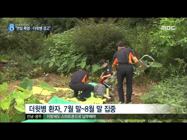 ◀ANC▶ 연일 계속되는 폭염에 더윗병 환자가 지난해보다 두 배 넘게 발생하고 있습니다. 앞으로 한 달 동안이 환자가 집중되는 시기인데 특히 고령자들의 각별한 주의가 필요합니다. 문형철 기자가 보도합니다. ◀END▶ ◀VCR▶ 마을 주민들이 한낮 더위를 피해 정자에 모였습니다. 부채질을 하고 선풍기까지 돌려보지...