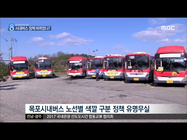 ◀ANC▶ 목포시가 시내버스 운행 체계를 개편하면서 노선별로 버스 색깔을 구분했었는데요.. 제도 도입 10년만에 이같은 시내버스 정책은 유명무실해지고 있습니다. 김양훈 기자가 취재했습니다. ◀END▶ ◀VCR▶ 목포 도심 내 단거리를 운행하는 순환버습니다. 똑같은 노선을 운행하는 7번 버스인데 어떤 버스는 주황색...