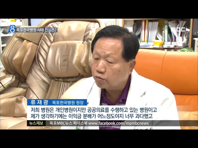 ◀ANC▶ 목포한국병원 원장들이 수십억원의 이익배당금을 나눠가졌다는 폭로가 나오면서 지역사회에 파문이 일고 있습니다. 내부고발에서 시작된 이번 사태는 병원장들의 상호 고소로 확산되며 진실게임 양상을 보이고 있습니다. 김양훈 기자가 취재했습니다. ◀END▶ 600병상 규모의 목포한국병원 지금까지 국고보조금 2...