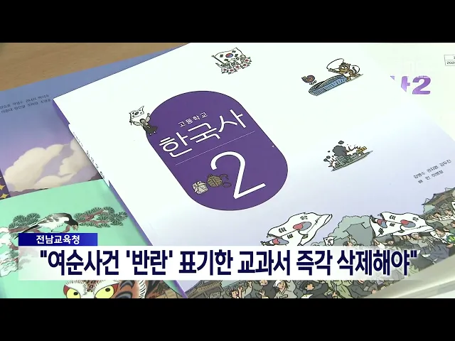 전남도교육청이 내년 교과서 상당수가 여순 10*19사건을 반란이라고 표현한 것에 대해 즉각 삭제를 촉구했습니다.전남교육청은 "해당 표현은 2021년 여야 합의를 통해 국회를 통과한'여순사건법'의 정의에 맞지 않는다"며사회 화합과 진실 추구를 저해할 수 있는매우 우려스러운 행태"라고 지적했습니다.또 "즉각 수정을 요...