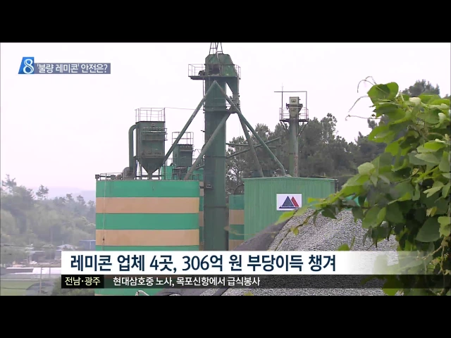 ◀ANC▶ 시멘트를 적게 넣은 레미콘을 만들어 공사현장에 납품해온 업체들이 적발됐습니다. 이 불량 레미콘은 전남의 아파트 건설현장과 도로 공사 등 2천 5백 곳에 수백억 원 상당이 납품됐는데 구조물 안전에 대한 우려가 제기되고 있습니다. 김진선 기자가 보도합니다. ◀END▶ ◀VCR▶ 전남의 한 하천정비공사에 실...