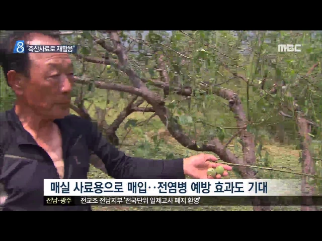 ◀ANC▶ 수확기 우박피해를 입은 매실을 순천시가 전량 매입해 사료용으로 축산농가에 제공하기로 했습니다. 과수농가와 축산업계 모두를 지원하는 일거양득의 효과가 기대됩니다. 박광수 기자가 보도합니다. ◀END▶ 지난달 31일밤, 매실 주산지에 집중된 우박피해는 예상보다 심각했습니다. 피해 면적이 순천지역만 440...