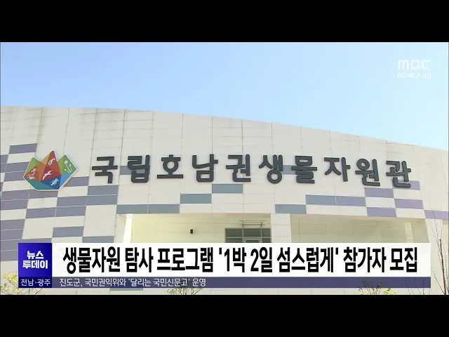 환경부 산하 국립호남권생물자원관은 섬에서 하룻밤을 보내며 다양한 생물자원을 탐사할 수 있는 가족 대상 숙박형 프로그램 참가자를 오는 25일까지 모집합니다.'1박 2일 섬스럽게' 프로그램은 오는 28일부터 29일까지 1박 2일 일정으로 신안군 자은도에서 진행되고, 모집 인원은 초등학생 자녀를 동반한 3인 이상 가족 단...