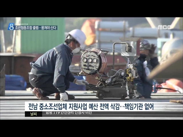◀ANC▶ 장기 불황에 허덕이는 전남 중소 조선관련 업체들이 협동조합을 만들어 자구책 마련에 나섰습니다. 부산·경남지역 조선기자재 협동조합들과 맞먹는 독자적인 사업 영역을 확보할 예정입니다. 신광하 기자가 보도합니다. ◀END▶ ◀VCR▶ 조선업의 장기 불황이 지속되면서 정부가 지원한 사업비는 11조 원에 달...