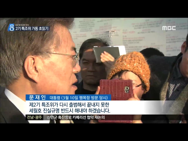 ◀ANC▶ 문재인 대통령이 세월호 사건을 다시 조사하라는 취지의 지시를 내렸습니다. 2기 특조위 구성과 세월호 참사 진상 규명에 대한 기대감이 커지고 있습니다. 김양훈 기자가 취재했습니다. ◀END▶ 2기 세월호 특별조사위 구성은 문재인 대통령의 대선 공약이었습니다. 문 대통령이 세월호 참사 재조사 의지를 내비...
