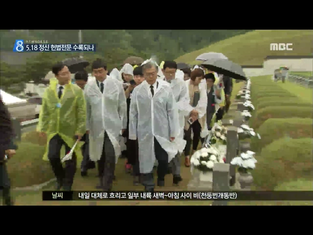 (앵커) 문재인 정권의 출범으로 올해 5.18 광주민주화운동 기념식의 풍경이 이전 정권과는 완전히 달라질 것으로 예상됩니다. 무엇보다 기대되는 것은 개정될 헌법 전문에 '5.18 정신'을 담겠다는 약속입니다. 김철원 기자입니다. (기자) 일주일 뒤에 치러지는 5.18 광주민주화운동 37주년 기념식에 문재인 대통령의 참석이...
