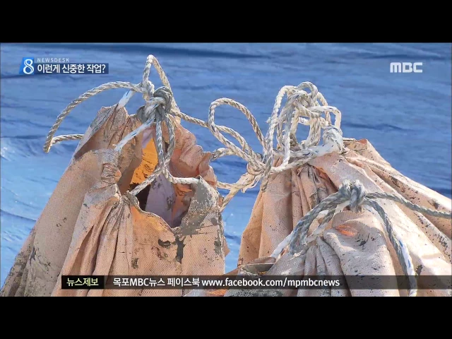 ◀ANC▶ 세월호 주변에서 수거한 진흙은 포대에 담아 보관 중입니다. 유해나 유류품이 있을 가능성에도 대비했다는 게 해양수산부 설명입니다. 그런데 목포MBC가 확보한 영상에서는 진흙포대가 마치 폐기물과 같은 취급을 받고 있었습니다. 그 충격적인 현장을 김진선 기자가 보도합니다. ◀END▶ ◀VCR▶ 세월호에서 흘...