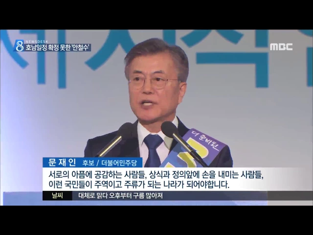 ◀ANC▶ 각 당의 대통령 후보가 확정되면서 더불어민주당 문재인 후보와 국민의당 안철수 후보의 양강구도가 뚜렷해지고 있습니다. 두 후보 모두 진보성향의 호남민심을 얻고 대통령 후보가 된 뒤 중도보수 표심을 두고 안철수 후보의 '호남' 고민이 깊어지고 있습니다. 김 윤 기자가 취재했습니다. ◀END▶ 더불어민주당...