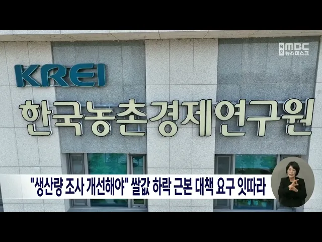 재고 대란 속에 쌀값이 하락세를 멈추지 못하는 가운데 통계 조사 체계 개편 등 근본적인 대책 마련을 요구하는 목소리가잇따르고 있습니다.한국농촌경제연구원은 "쌀 생산량 조사" 관련 연구 보고서를 통해쌀 생산량 조사는 소비량 조사와 더불어 정부의 쌀 수급 대책의 핵심 정보를 제공하므로 정확도를 높이기 위한 노력...