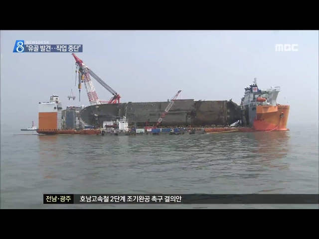 ◀ANC▶ 세월호 인양 현장에서 미수습자로 추정되는 유골과 유류품이 발견됐습니다. 현재 미수습자 가족과 해경, 국과수 등이 현장에서 확인 작업을 벌이고 있는데요. 팽목항에 나가있는 취재기자 연결합니다. 김진선 기자! ◀END▶ ◀VCR▶ 네. 팽목항에 나와있습니다. 세월호를 받치고 있는 반잠수식 선박 갑판에서 유...