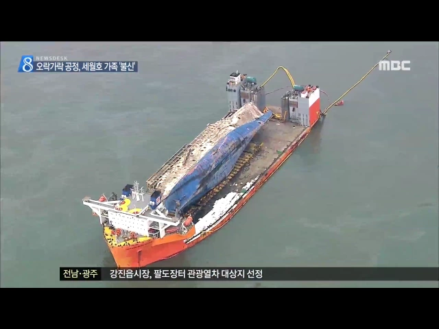 ◀ANC▶ 세월호가 목포신항으로 이동하기 전 마지막 채비를 하고 있습니다. 세월호 가족들도 초조한 시간을 보내고 있는데, 오락가락하는 공정과 뒤늦은 설명이 불신을 키우고 있습니다. 동거차도에서 양현승 기자입니다. ◀END▶ ◀VCR▶ 해양수산부는 배수를 위해 선체에 구멍을 뚫어야 한다고 설명합니다. 당초에는 ...