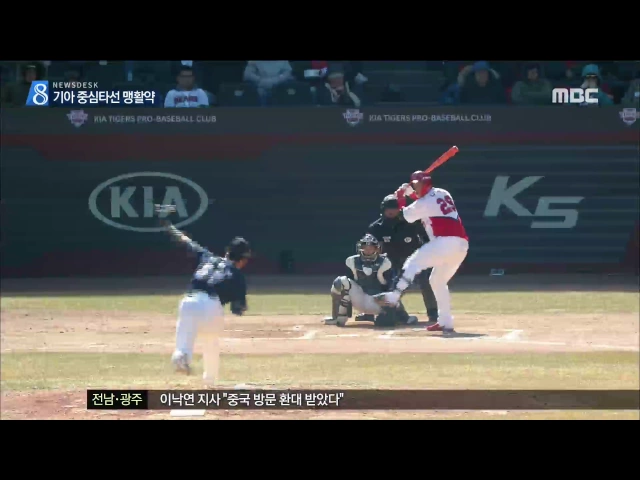 (앵커) 올 시즌 프로야구 시범경기의 막이 올랐습니다. 기아타이거즈가 11번째 우승 신화에 도전하고 있는 가운데 막강한 중심 타선과 외국인 선수들의 활약상이 기대되고있습니다. 이계상 기자.. (기자) 지난해 한국시리즈 우승컵을 들어올린 두산베어스를 상대로 한 첫 시범경기, 올 시즌부터 호랑이군단에 합류한 최형우...