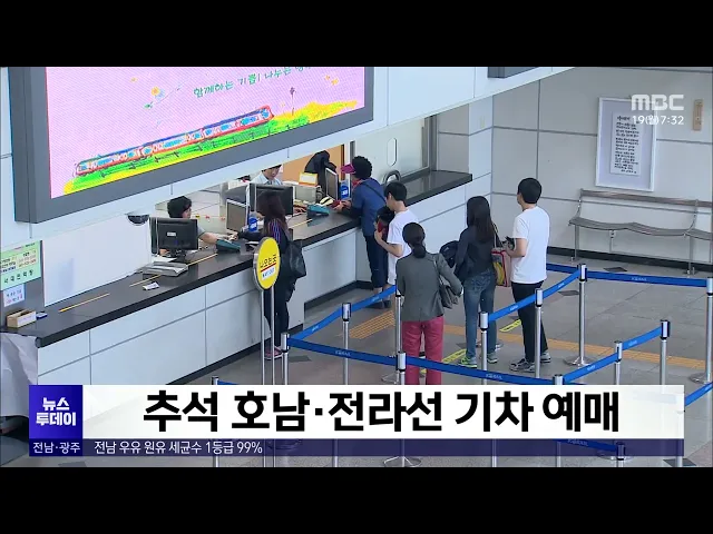 호남선과 전라선 추석 기차표 예매가 오는 20일부터 온라인으로 진행됩니다.ktx와 새마을, 무궁화 열차 승차권은 오는 20일 장애인과 노인 등 교통약자를 위한 사전 예매가 먼저 실시되고 일반인 예매는 22일 진행됩니다.SRT 전라선과 호남선 추석 기차표 예매는 27일에 교통약자를 대상으로 먼저 실시되고 29일에는 일반인...