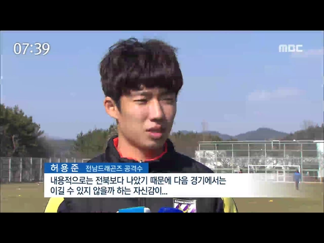 ◀ANC▶ 프로축구 전남드래곤즈가 이번 주말, 첫 홈 경기를 앞두고 훈련에 열을 올리고 있습니다. 개막전에서는 아쉽게 졌지만, 한층 성숙한 경기력을 보여주면서 올 시즌 기대감을 높이고 있습니다. 문형철 기자의 보도입니다. ◀VCR▶ 한겨울 추위가 물러간 푸른 잔디 위에서 드래곤즈 선수들이 훈련에 몰두합니다. 날...