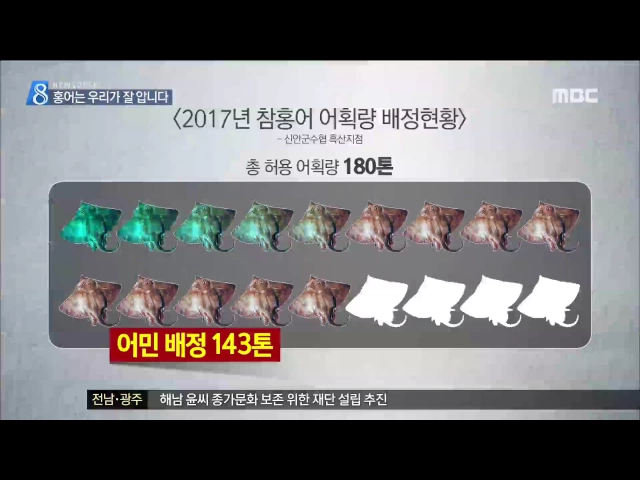 ◀ANC▶ 이처럼 흑산도 바다가 홍어밭으로 될 정도로 조업이 잘 되는데, 어민들은 홍어가 잘 잡혀도 걱정입니다. 어획자원 보호를 위해 정부가 묶어둔 조업허가량이 비현실적이란 불만이 큽니다. 김윤 기자입니다. ◀END▶ 지난해 국내 연근해 어업 생산량은 92만 톤 가량. 44년만에 처음으로 백만 톤 선이 무너졌습니다....
