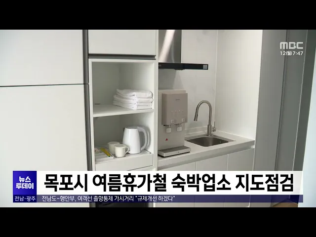 목포시는 여름 휴가철 성수기와 코리아 오픈 배드민턴 선수권 대회를 대비해 오는 9월 1일까지 숙박업소에 대한 대대적인 지도 점검을 실시합니다.목포시는 이번 숙박업소 지도점검에서관광객과 선수단의 안전을 위한 객실 위생점검과 불법카메라 설치 여부, 화재 예방을 위한 시설 점검 등을 유관 기관과 합동점검할 계획...